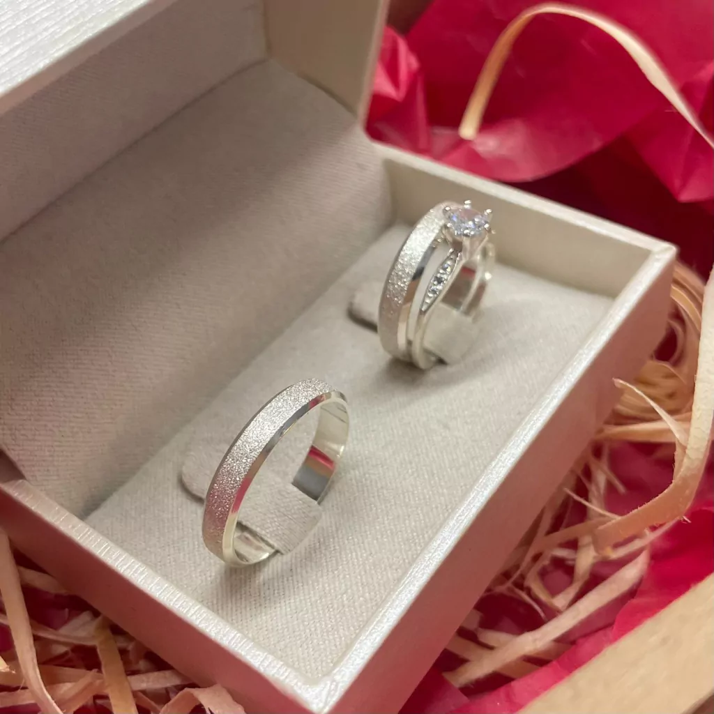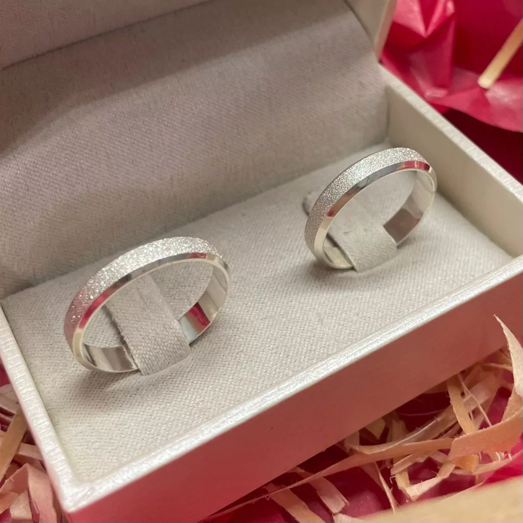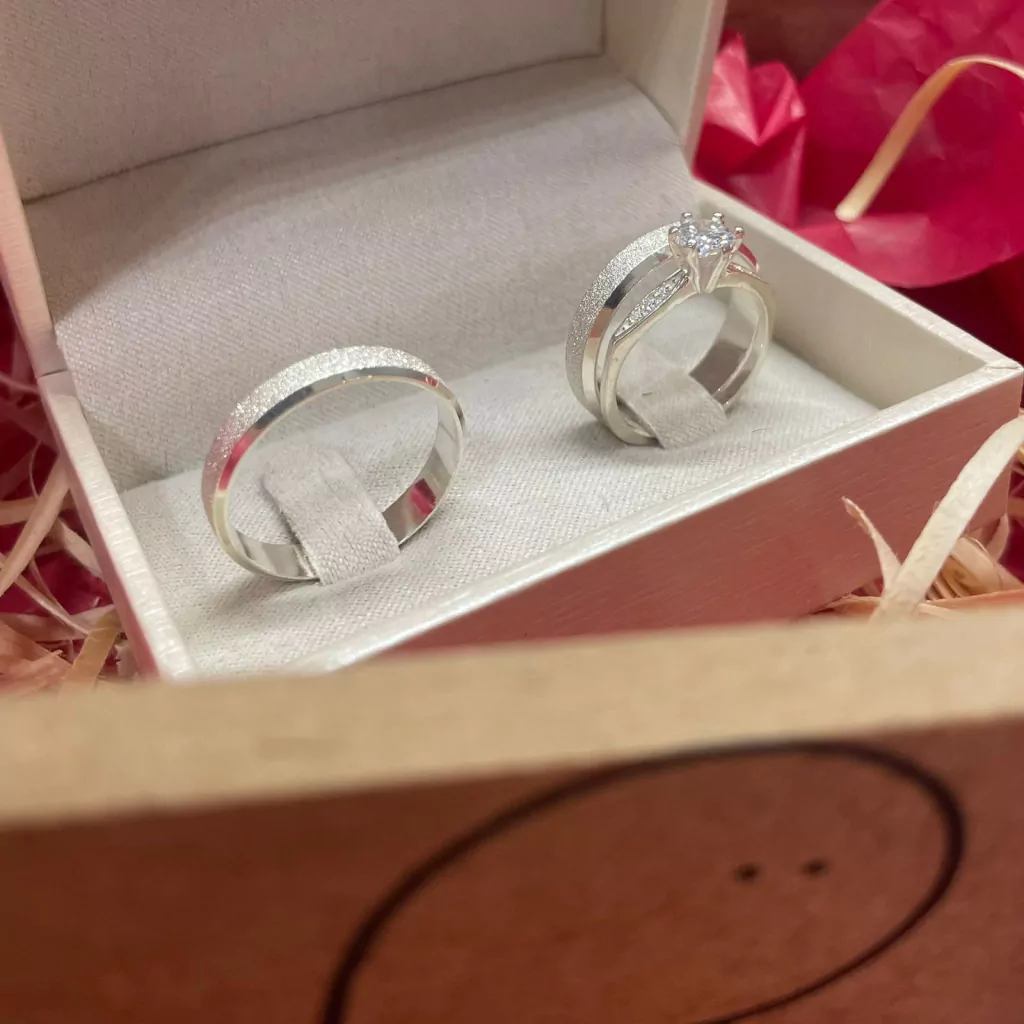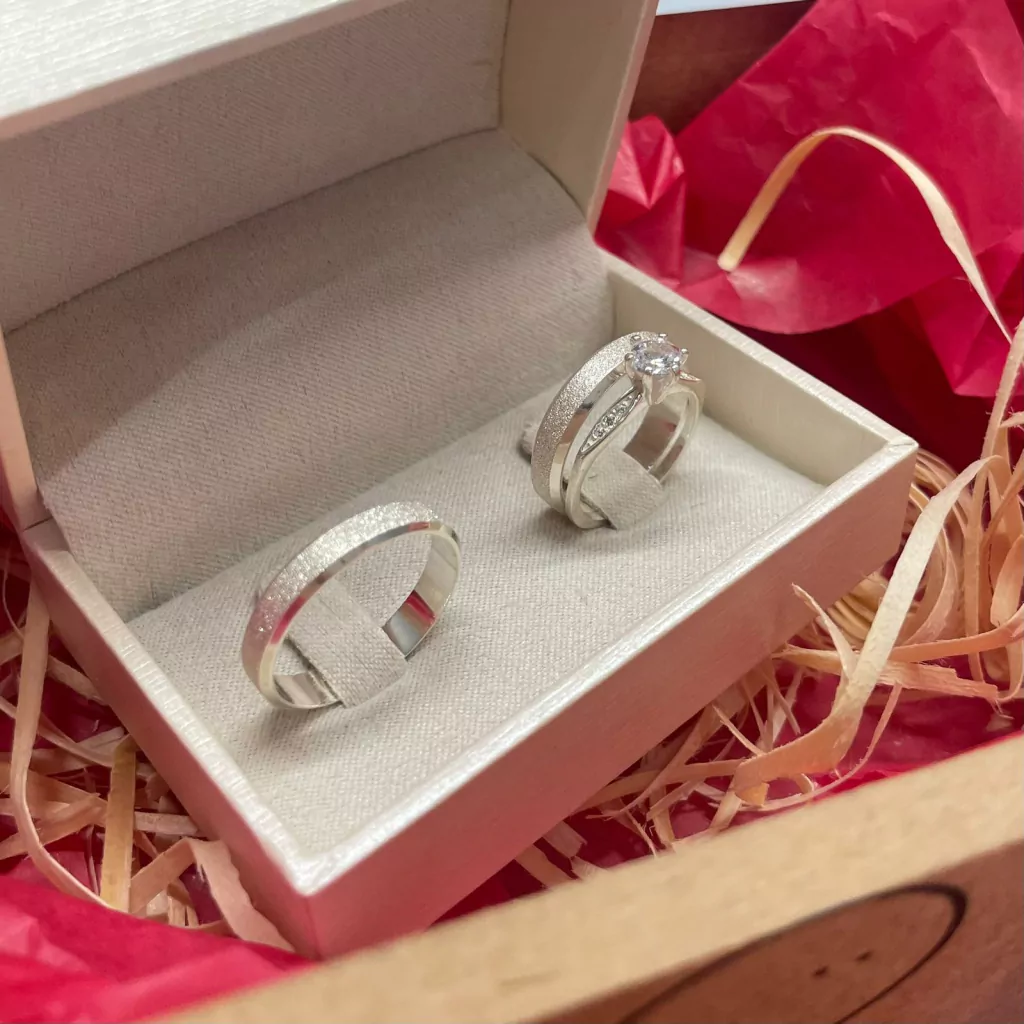 Modelo: Par de Alianças 4mm Lapidada Fosqueada (anel solitario não incluso, escolha se deseja ou não com o anel solitário)