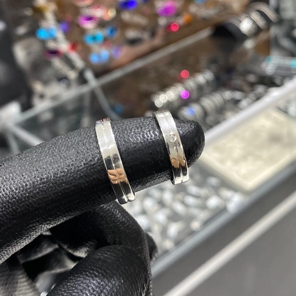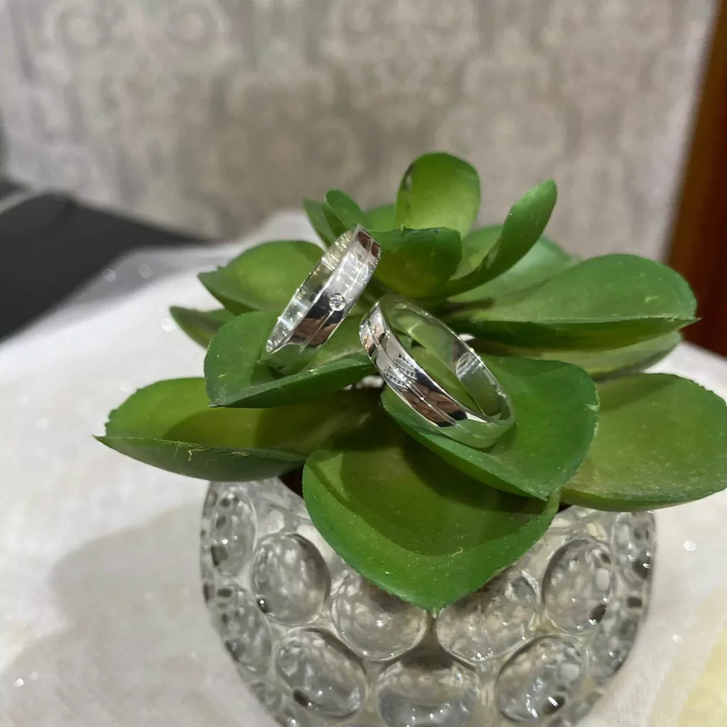 Modelo: Par de aliancas 4mm lisa (feminina contém uma pedra cravada)