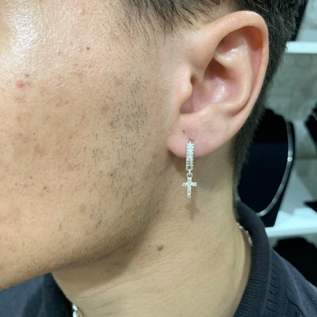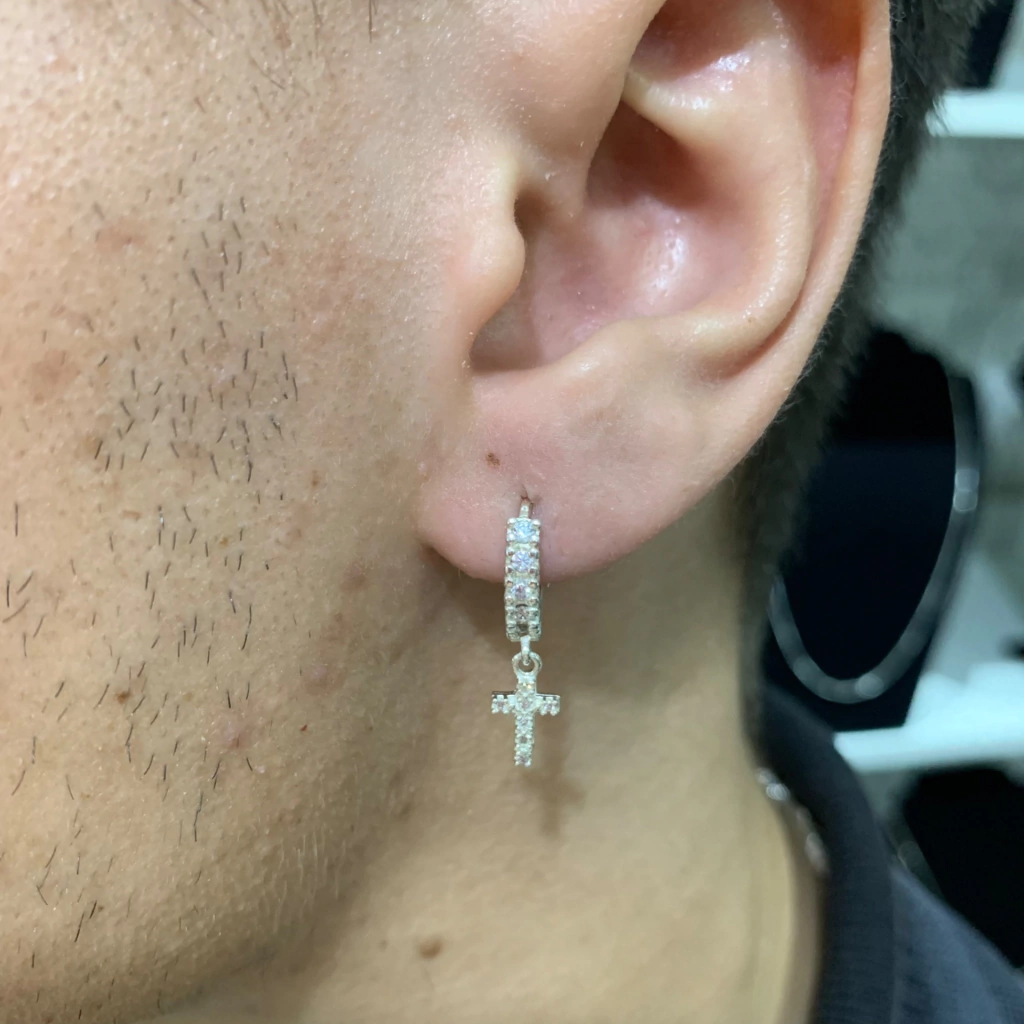 Modelo: Par de Brincos Argola com Cruz Cravejada ( UNISEX )