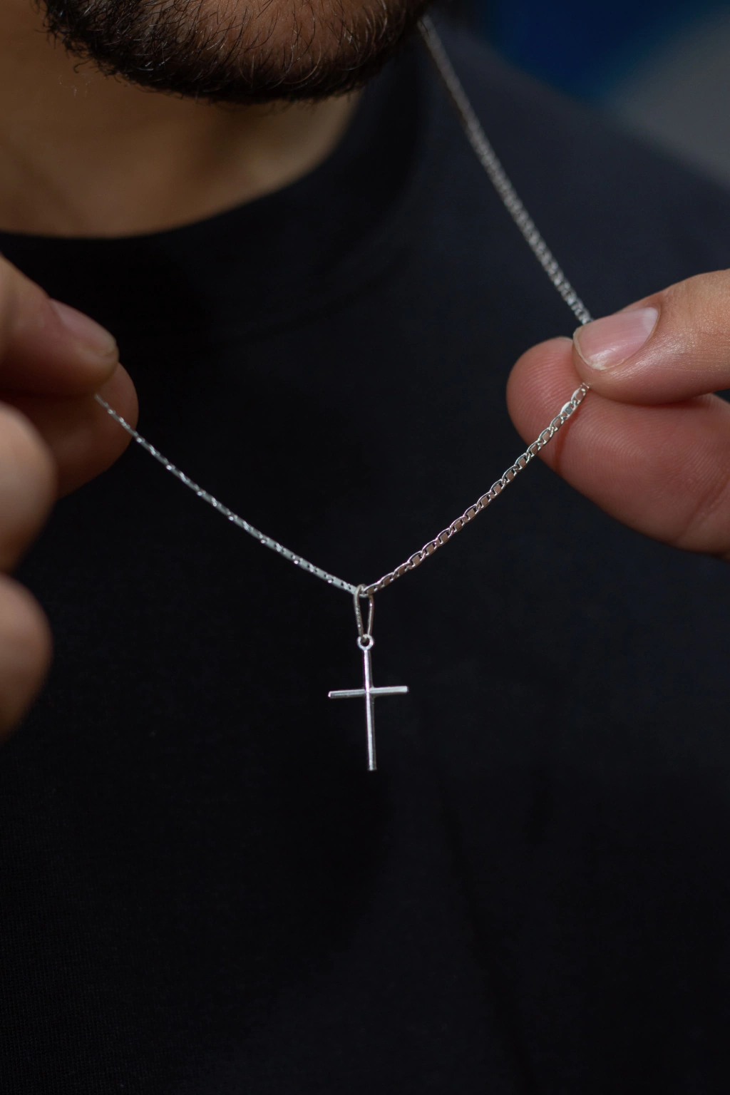 MODELO: Corrente Piastrine 1,5mm 60cm + Pingente Cruz Palito