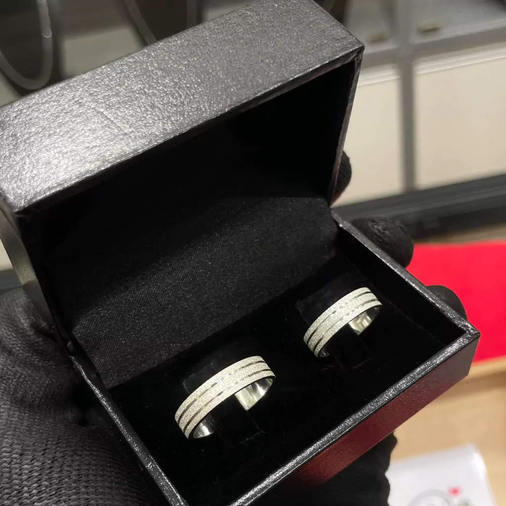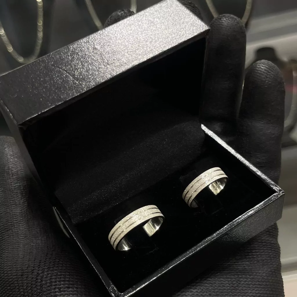 Modelo: Par de Alianças 5mm Fosqueada com Dois Frisos (anel solitario não incluso, escolha se deseja ou não com o anel solitário)